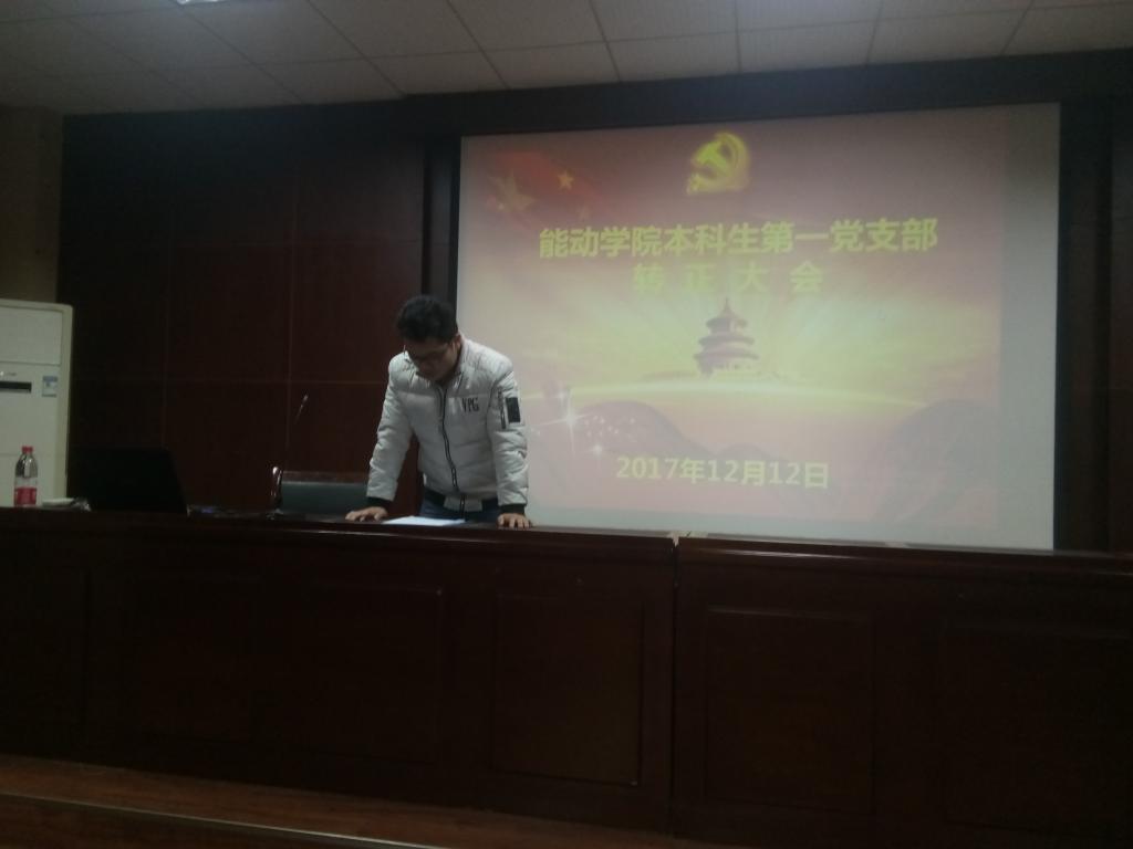 2017年12月12号晚上,在工一A428会议室召开了能动学院本科生第一党支部2017年下半年预备党员转正大会。会议由一支部副书记申修伟同志主持,主要对邓胜骏、赵祥乐等六名预备党员转为正式党员进行了讨论和表决,一支部全体党员参加了本次会议。