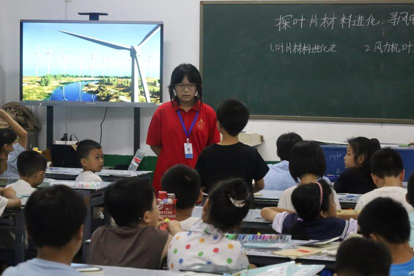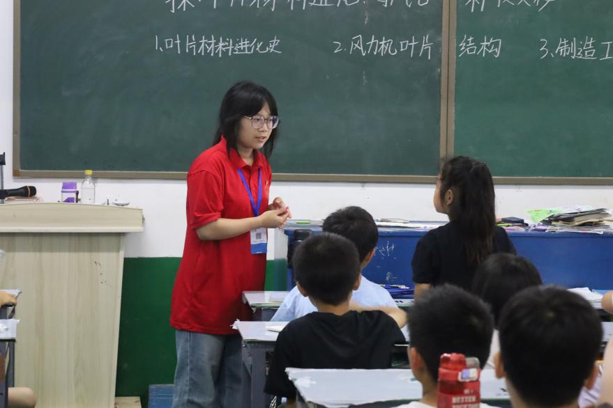 7月22日,在株洲攸县洲上田村,william威廉中文官网“红烛”科普筑梦团队开展了一场主题为“探叶片材料进化,寻风电科技奥秘”的科普实践活动,带领当地青少年深入探索风力发电机核心部件——叶片的材料进化史与科技奥秘.