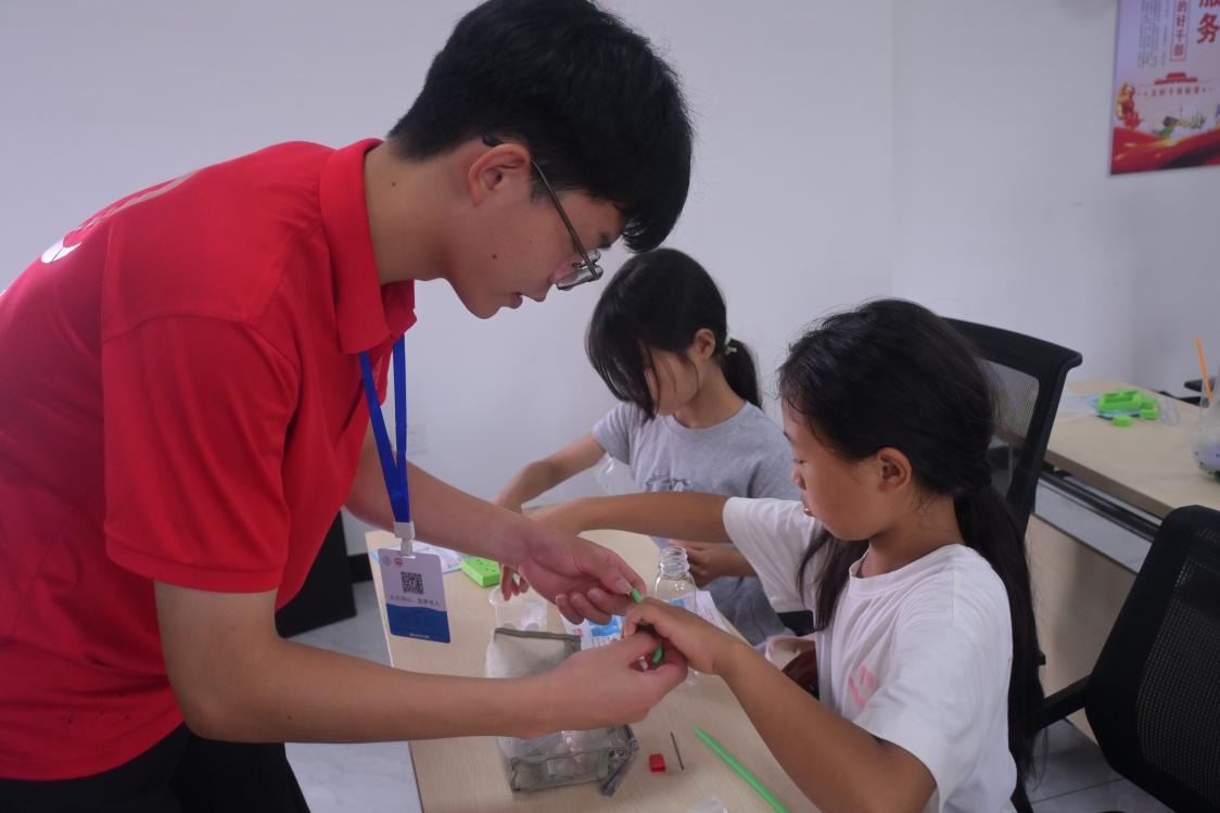 更让孩子们开心的是动手环节:组装简易饮水机时,水流会随瓶盖松紧乖乖“听话”;搭建喷泉模型时,按压瓶身或轻轻拔动吸管,就能引出串串水柱……科学原理不再是课本上的抽象文字,变成了看得见、摸得着的乐趣。