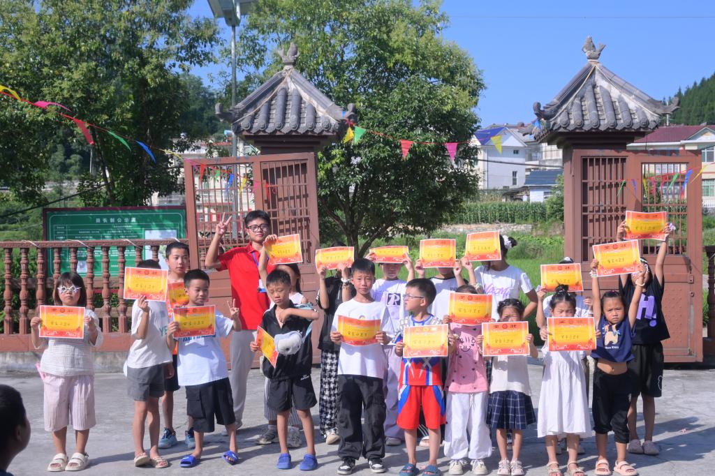 汇演在活力四射的舞蹈中拉开序幕。队员和孩子们精心准备节目:唱歌,舞蹈串烧,师生携手创意走秀…将现场气氛推向高潮,生动诠释了亦师亦友的深厚情谊。活动特别表彰了在安全知识竞赛及支教期间表现优异的学生,肯定了他们在探索求知路上的点滴进步。汇演尾声,全体队员深情合唱《我们的明天》和《青春》,嘹亮的歌声承载着对孩子们未来的美好祝愿,也为本次支教活动画上圆满的句号。