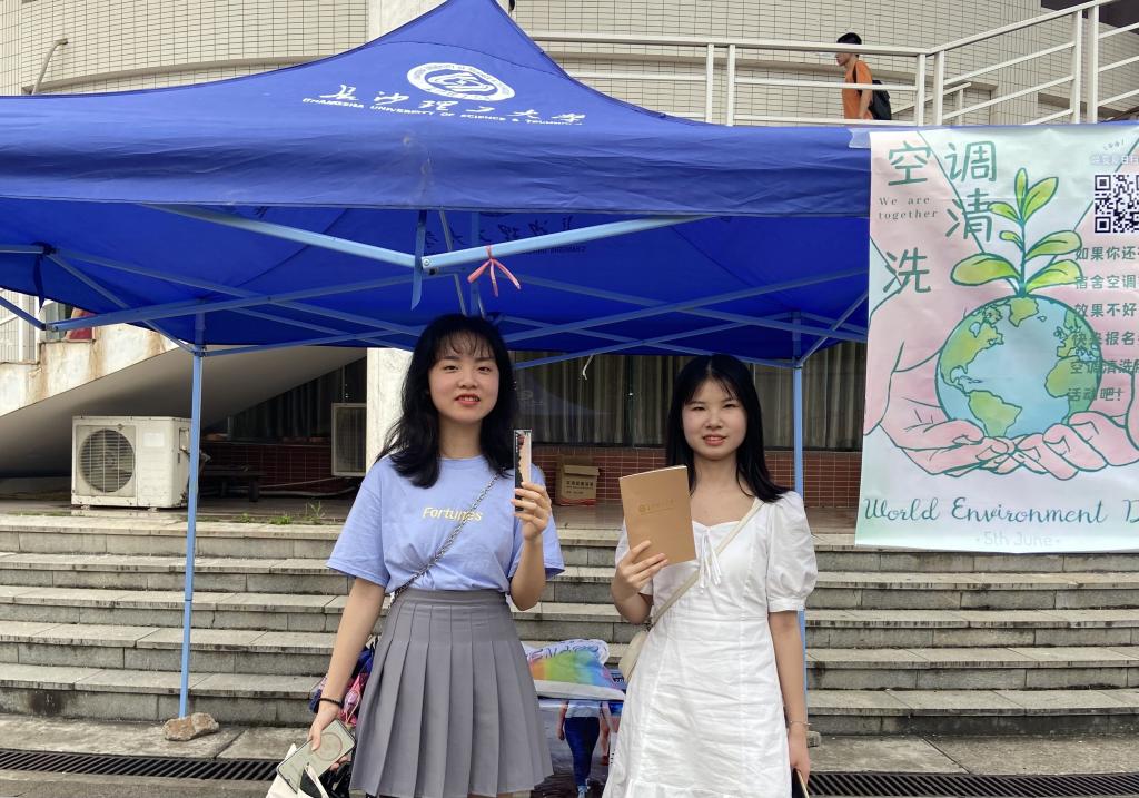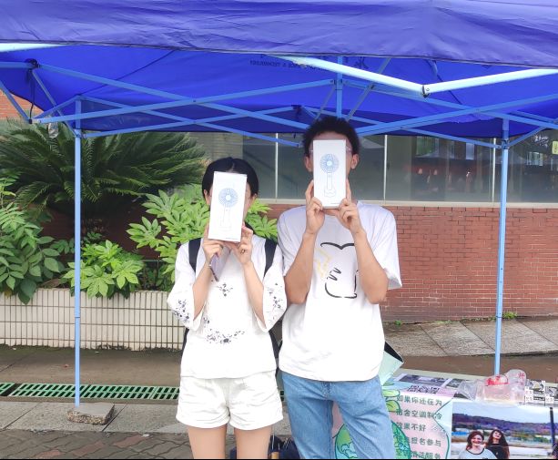 此次活动不仅通过线下摆点,同时结合了微测试、平台预约等线上方式。测试的内容包含了环境保护和空调清洗两方面。每一位拿到奖励后合影的同学脸上的笑容,都是对本次宣传推广活动的肯定。值班的邹宇翔同学说到“其实大家环境保护意识和参与志愿服务的热情都很高,答题是科普,也是温馨提示”。