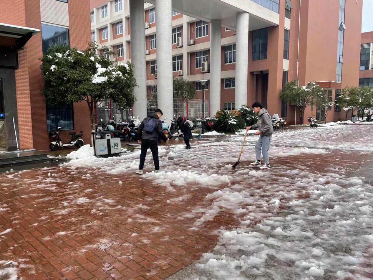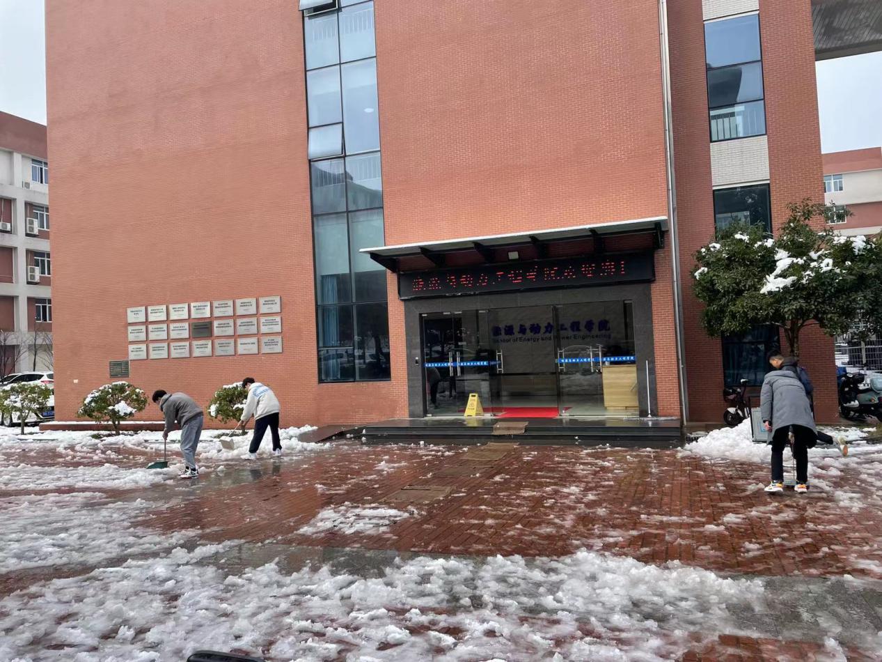 为保障广大师生的出行安全,2月23日上午,能动学院学生会组织志愿者在新能源大楼前坪进行了扫雪除冰行动。