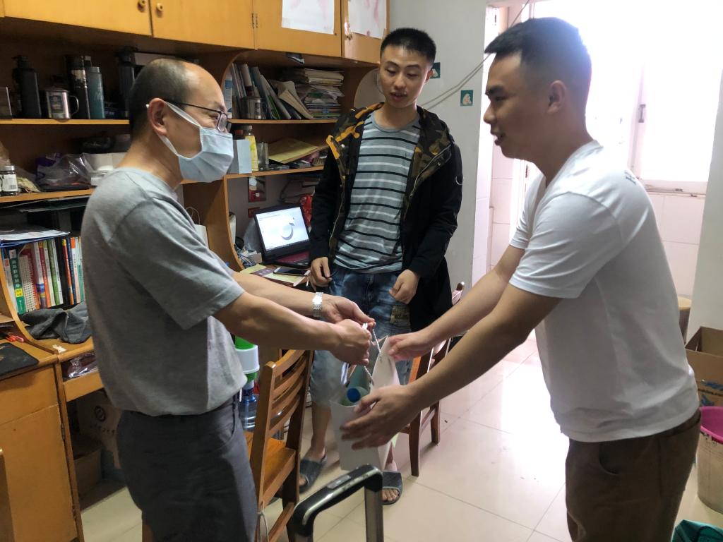 学生度过史上最长寒假后,见到阔别已久的老师,兴奋不已。领导老师们一一询问学生及其家人的身体状况、假期学习生活状态、返程行程、毕业设计进展和就业考研情况,并嘱咐同学们要继续做好疫情自我防控,做到戴口罩、讲卫生、勤打扫、多通风、不扎堆,严守学校防控纪律,对自己和他人的生命安全和身体健康负责,同时充分利用好最后的大学时光,为四年的大学学习生活划上圆满句号。开展了“防控知识”后,领导老师们为学生送去学院精心准备的“防疫大礼包”,内含防疫小贴士、消毒液、消毒凝胶和口罩等物资。收到这份“大礼”,同学们感动不已,纷纷表示会物尽其用,每天做好寝室的清扫消杀,佩戴好口罩,做好防护,用实际行动表达对学院及其老师的感恩之情。