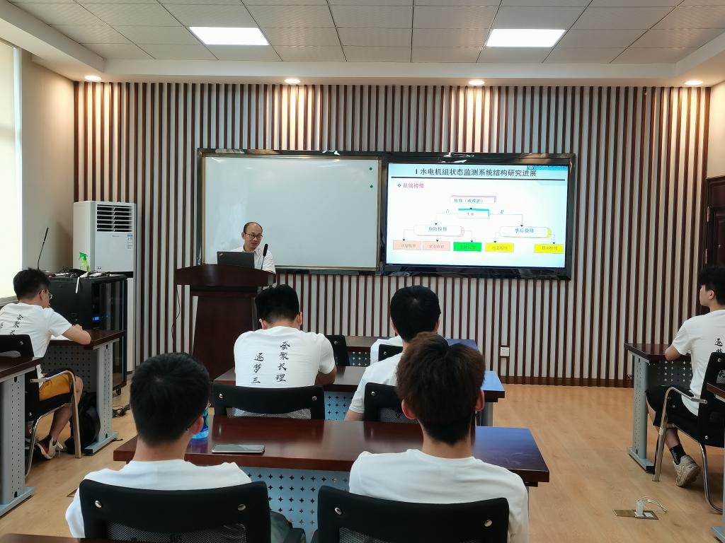 6月16日上午,三峡联培班邀请来自能源与动力工程学院副教授刘忠为联培班的学员们授课,课程名为《水电机组状态监测技术研究进展》。
