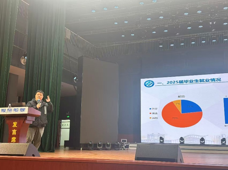 谢喆结合当下就业市场动态与学院往届毕业生去向,对能动领域就业趋势作出初步分析,建议同学们提前关注行业招聘信息,树立“先就业再择业”的观念,合理确定职业目标,通过专业学习、实习实践、技能提升等方式增强就业竞争力,为将来就业做好充分准备。