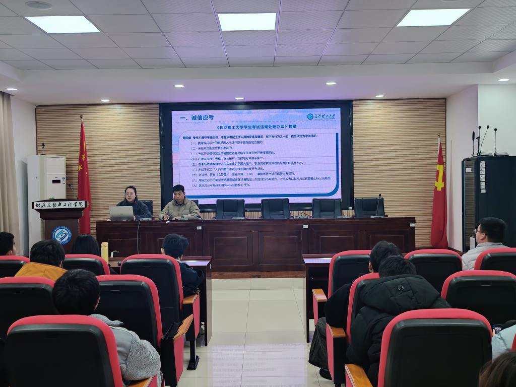 会上,罗亦欧围绕期末诚信应考、增强安全意识、关注身心健康及学校交通新规等内容展开说明。她强调,同学们要严格遵守考试纪律,自觉维护考场秩序;同时提醒大家严禁在宿舍内吸烟,加强消防安全意识,并对学校交通新规的实施背景与具体要求进行了详细解读。李逸奇则结合学院近期发生的诈骗案例,详细讲解了常见诈骗手段,提醒同学们务必提高警惕,加强防范。他特别指出,任何以支付保证金、代充游戏币或冒充好友借钱等理由提出的汇款要求,都需仔细核实、严防被骗。