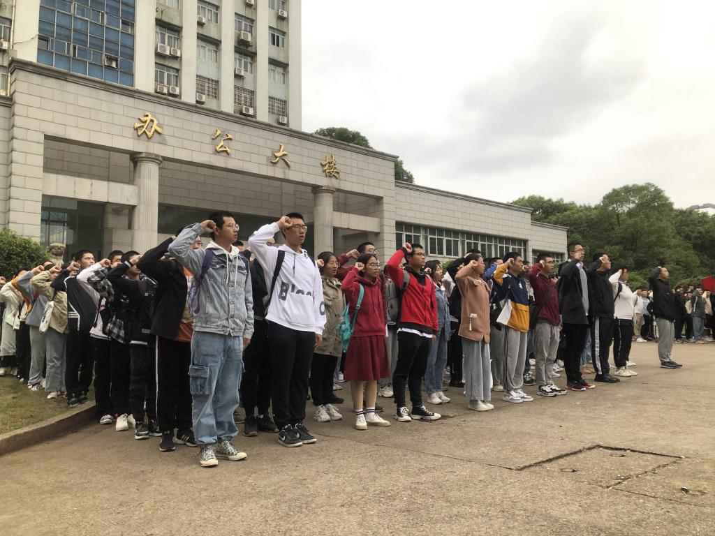 10月11日早上6:30,能动学院部分21级新生在办公大楼前集合完毕,参加新学期第一次升旗仪式,参加仪式的还有学院21级新生辅导员罗亦欧、部分城南学院的同学。