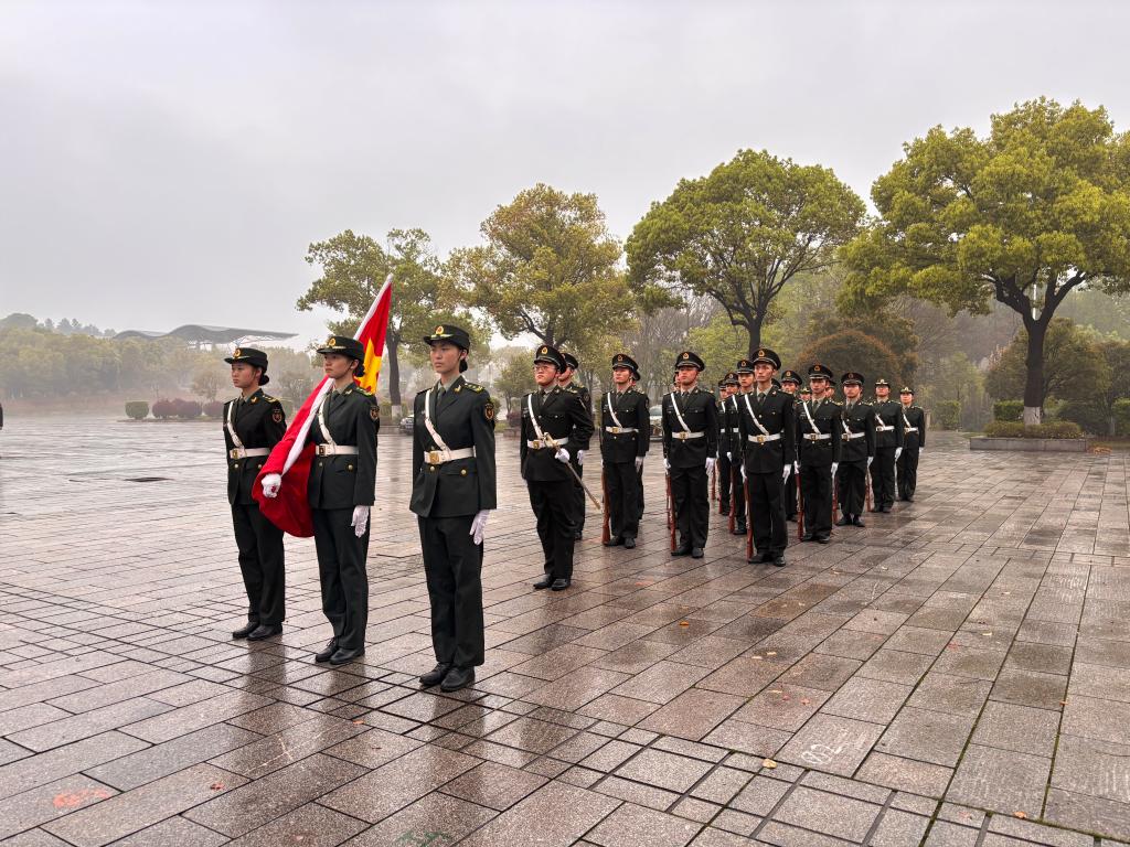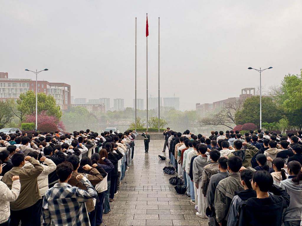 4月7日清晨,能动学院于云塘校区图书馆前坪举行春季学期第一次升旗仪式,2025级辅导员罗亦欧、李逸奇及2025级新能源专业全体学生参与本次活动。