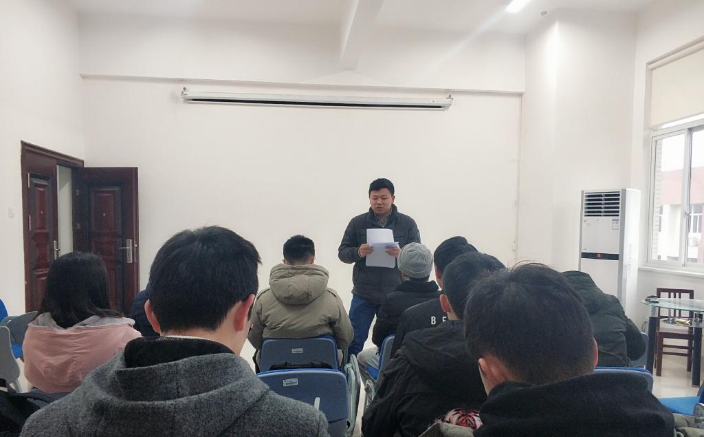 1月11日上午,能动学院于新能源二号楼503室召开本科生寒假留校安全教育会议。全体寒假留校学生参加本次会议,会议由辅导员彭博主持。