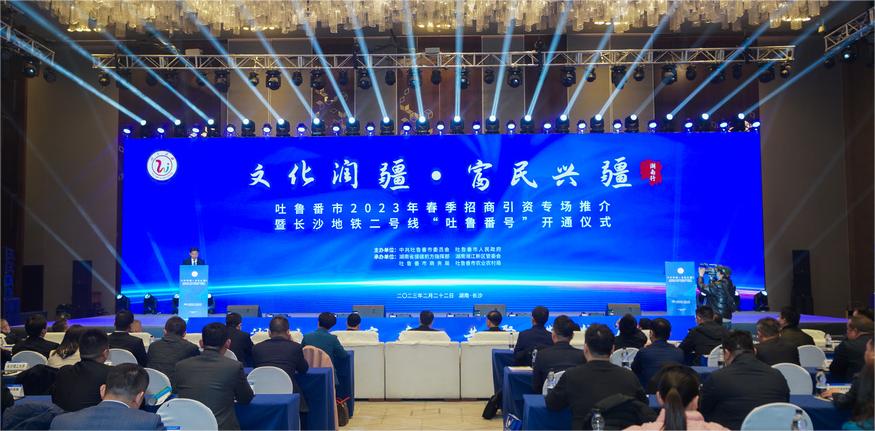 2月22日,“文化润疆·富民兴疆——湖南行”吐鲁番市2023年春季招商引资专场推介暨长沙地铁二号线“吐鲁番号”开通仪式在长沙举行。湖南省和吐鲁番市有关领导出席。能动学院党委书记成华、副院长孙小琴受邀代表william威廉中文官网参加此次活动。