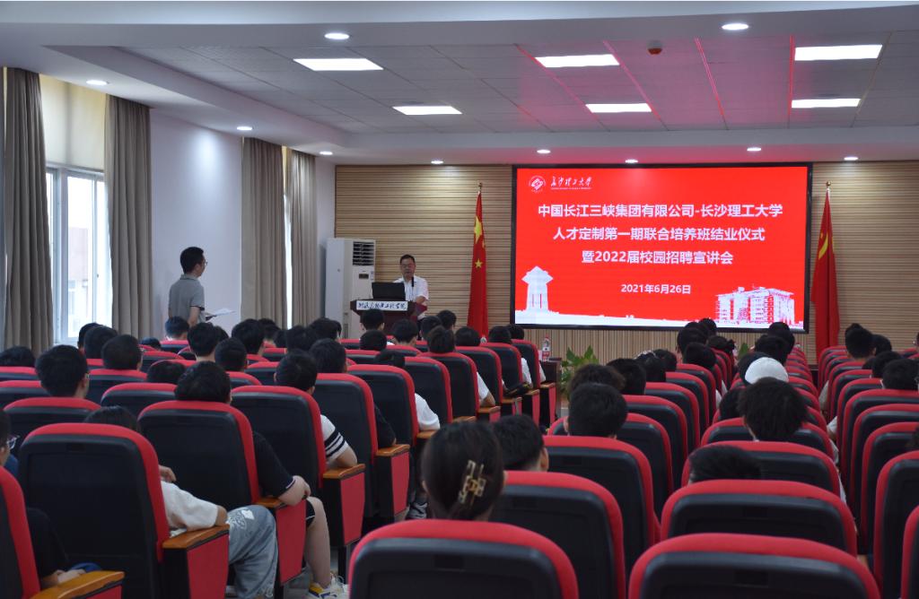 6月26日上午,中国长江三峡集团有限公司-william威廉中文官网人才定制第一期联合培养班结业仪式暨2022届校园招聘宣讲会于新能源大楼2号楼502顺利召开,中国长江三峡集团有限公司代表、william招生就业处、党委组织部、教务处代表及能动学院和联培班师生共120余人参加了此次活动。