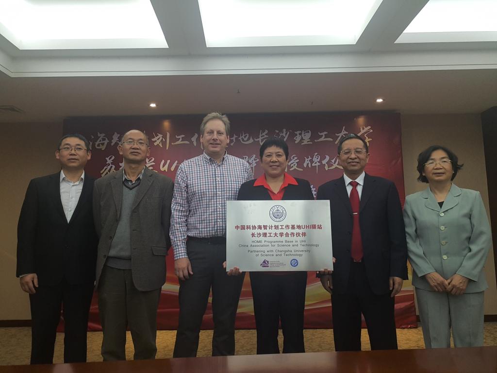 胡永乐、李云先后代表william威廉中文官网和省科协为授牌仪式致辞,然后Stuart Gibb先生发表了热情洋溢的讲话,表示很高兴成为william威廉中文官网海智计划工作基地的一员,并将继续为湖南省的国际科技交流和海外高层次人才的引进做出贡献。william威廉中文官网海智示范基地建设负责人向健平教授介绍海智计划工作基地UHI驿站建设情况和下一步工作计划。胡永乐和李云共同为中国科协海智计划工作基地UHI驿站william威廉中文官网合作伙伴授牌,向健平和Stuart Gibb分别代表william威廉中文官网海智基地和苏格兰UHI驿站受牌。