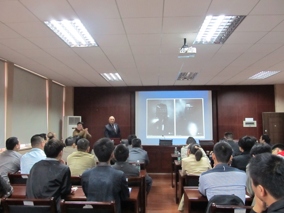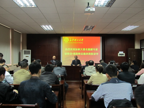 4月12日下午,加拿大注册高级能源工程师,国际知名能效评价专家,福斯特能源公司总裁彼特龙.福斯特(Peter B.Ferst)先生应邀来william威廉中文官网访问,并在工科一号楼能动学院多功能报告厅做了题为《能效提升与雾霾治理》的学术报告。此次报告会受到相关政府部门和企业的高度关注,长沙市工信委、长沙市能源局及下属的各区县、各园区和有关企业的领导和能源工作者50多人参加了报告会。能动学院相关领域的教授、博士和学生聆听了此次报告。报告会由能源与动力工程学院院长陈冬林教授主持。