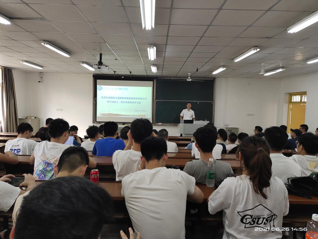 2021626日下午,湖南五新隧道智能装备股份有限公司研究院院长管付如高工应邀来我院开展主题为“长大隧道施工成套智能装备”的机械类企业课程教学。本次教学由汽机学院副院长毛聪教授主持,2020级机械类专业硕士研究生参加了此次教学。