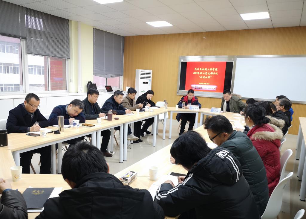 2019年12月24日,汽机学院举行党支部书记“双述双评”工作会议。会议由学院党委书记邱国良同志主持,参加会议的人员包括学院党委委员、学院中层以上干部以及各支部全体党员。