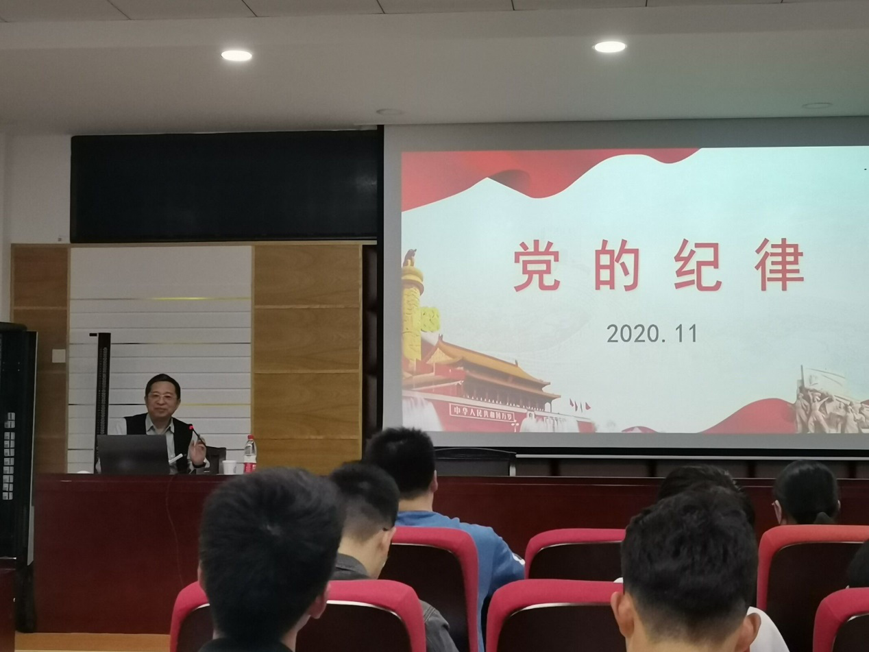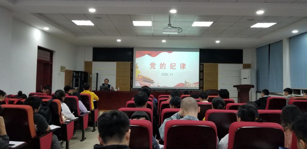 2020年11月17日晚,校党委委员、纪委书记胡永乐为汽车与机械工程学院第12期党员发展对象上专题党课,全体发展对象参加学习。