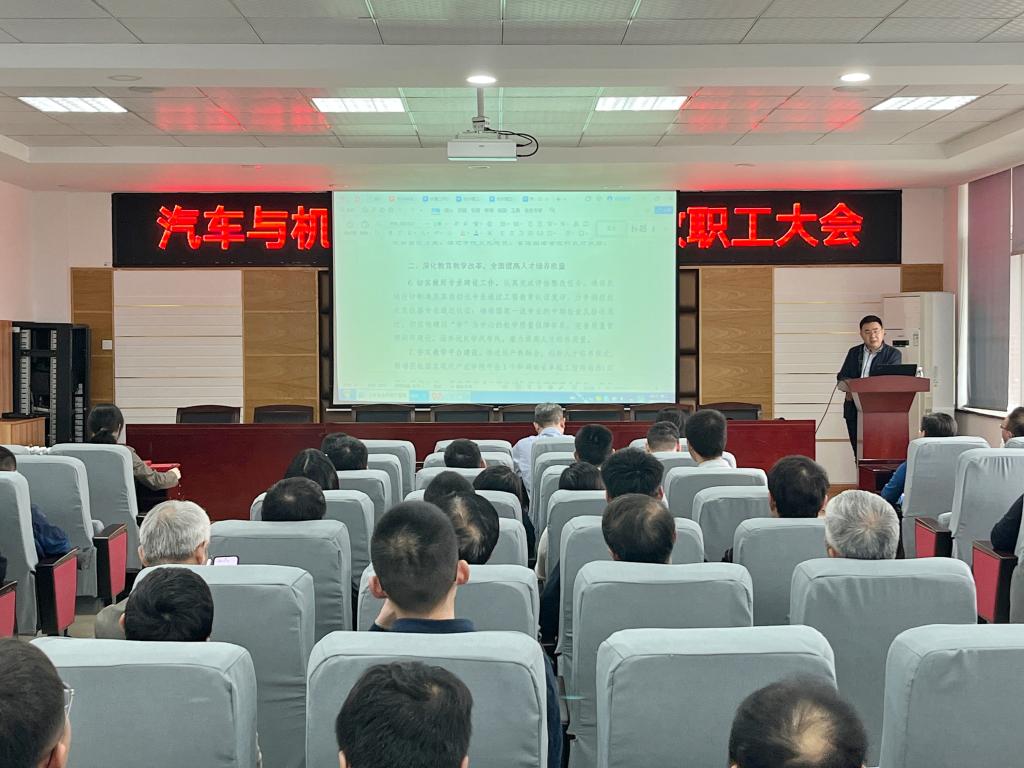 4月30日下午,汽机学院在工科一号楼B417多功能报告厅召开全体教职工大会。会议由学院党委书记孔伟红主持。