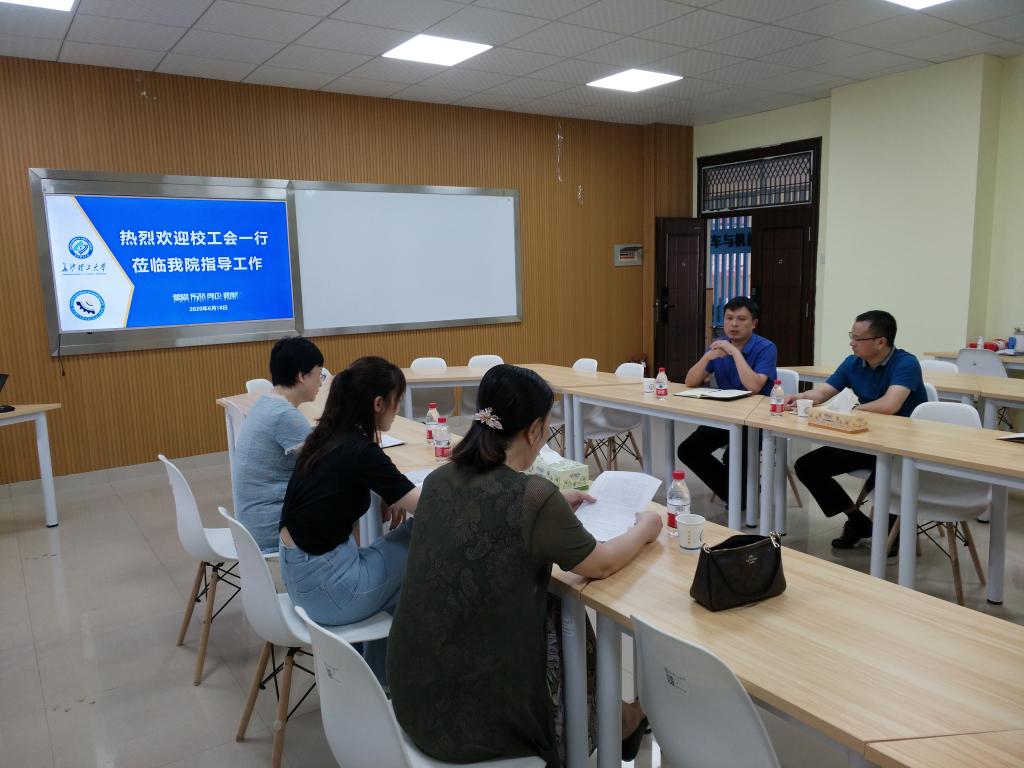 6月18日上午,校工会常务副主席郭剑一行3人莅临汽机学院调研指导工作。学院党委书记邱国良、副书记兼工会主席刘亚辉参加了调研会议。