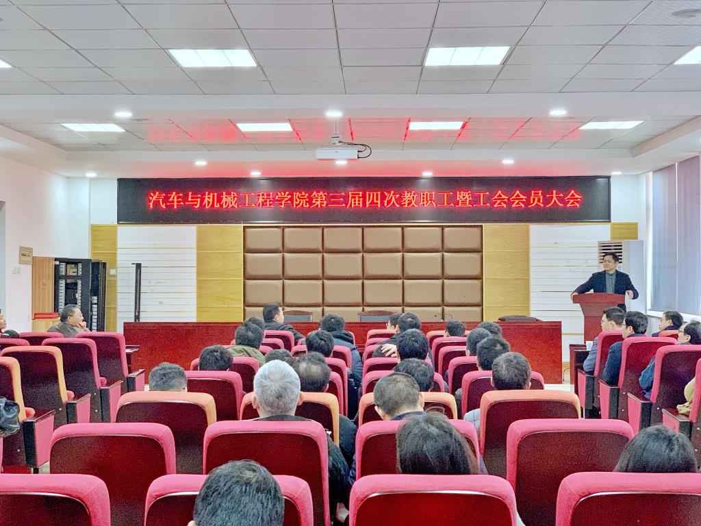 1月19日,汽车与机械工程学院第三届四次教职工暨工会会员大会在工科一号楼B417学院报告厅召开。院党政班子全体成员、全院教职工参加会议。会议由党委书记施一满主持。