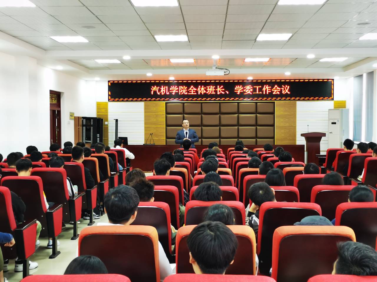 10月22日中午,汽车与机械工程学院在工一B417组织召开全体班长、学委工作会。院党委副书记刘亚辉、辅导员王丽丽、宋新、路平安和全体17、18、19级班长及学委参加大会。大会由王丽丽主持。