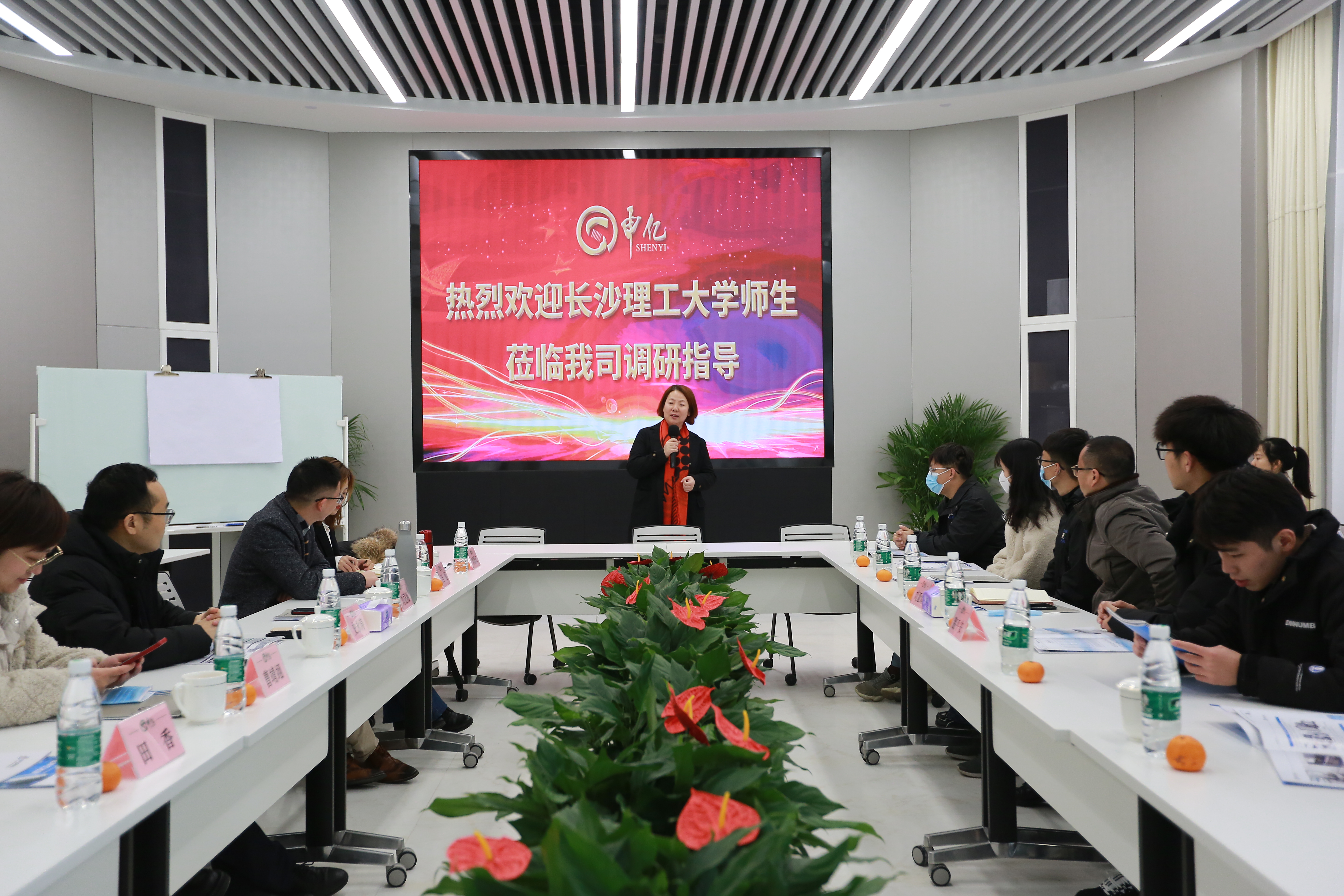 首先,申亿集团运营总监史永涛对湖南申亿集团的整体情况进行介绍,公司秉承员工社会化、专业化和长远化的人才培养理念,专注于打造精准、专业、个性的企业产品,对企业提供一流产品与服务、对社会承担企业责任。总经理刘昆湘对长理师生的到来表示热烈的欢迎,对同学们选择机械专业的决定表示赞赏,她指出机械专业是永不过时的专业,是众多行业发展的基架和依靠,选择机械专业要守得住诱惑,沉得下心钻研,着眼行业未来,提升个人能力。随后她对学生抛出橄榄枝,欢迎学生来申亿集团进行实习,既能够提升绘图能力,又可以增长见识,了解及使用高端检测设备。最后,受到申亿集团助学基金奖助的学生代表对个人成长情况进行汇报,对企业的关心与帮助表示感激,与会同学从个人发展和职业困惑等方面进行提问,刘总及各位与会领导进行了细致的解答。