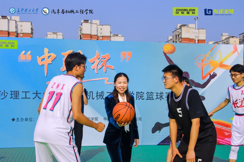 (中联重科人力资源管理中心李晓虹女士为篮球赛开球)