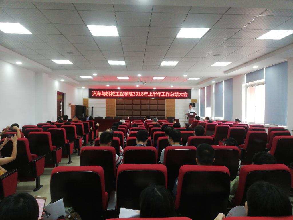 7月20日下午,汽车与机械工程学院在四楼多功能报告厅召开了2018年上半年工作总结大会,全院教职工参加了会议,会议由院长杜荣华主持。