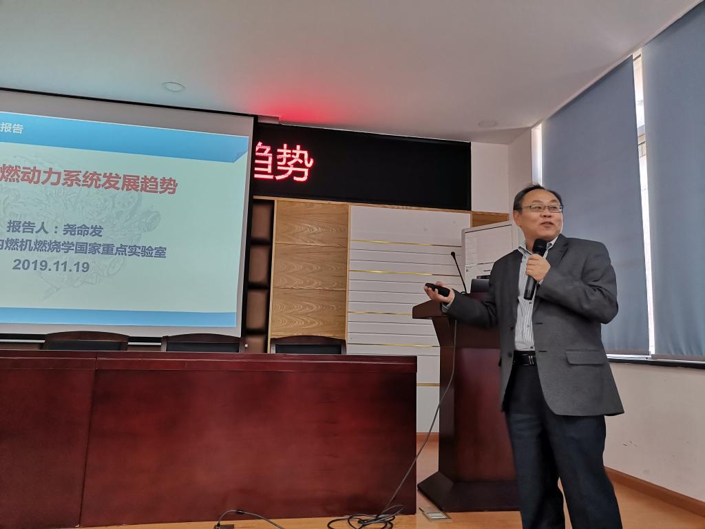 2019年11月19日上午10点,汽机学院在工一B417举办“车用内燃机动力系统发展趋势”学术报告。本次报告会主讲人尧命发教授是内燃机燃烧学国家重点实验室主任、国家自然科学基金创新群体负责人、中国高等教育学会工程热物理专业委员会理事兼副秘书长。吴刚副教授主持此次报告,学院20余名教授、博士以及100余名研究生、本科生参加了本次讲座。