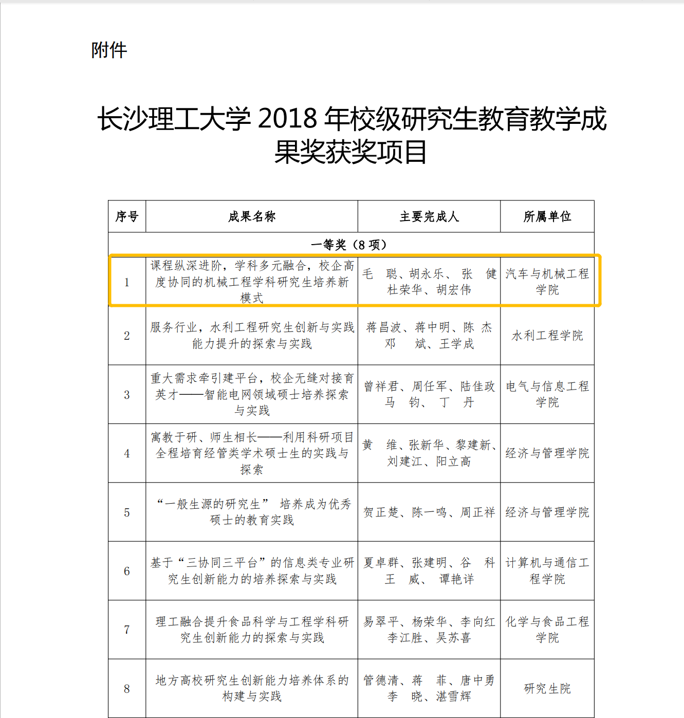 根据《关于开展第十二届湖南省高等教育教学成果奖励工作的通知》(湘教通〔2018〕553 号)和研究生院《关于申报第十二届湖南省高等教育教学成果奖的通知》,经申请人申请、单位推荐,学校组织专家评审,共评选出william威廉中文官网 2018 年校级研究生教育教学成果奖 15 项(其中一等奖 8 项、二等奖 7 项)。文件请见附件。