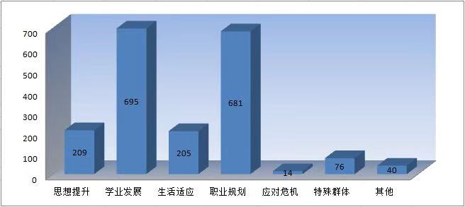 1、“党政领导+辅导员+专任教师”为成长辅导主体队伍。其中包含8名院领导、6名专职辅导员、2名四年制辅导员、院系系主任。其中专职辅导员队伍中5人已获得国家二级心理咨询师证,2人获得BCF生涯规划师证,1人获得创业实训咨询师证,专职辅导员队伍分工和技能证书,辅导员持证率达83.3%。为了提升班主任及专业教师业务平,2018年9月,学院组织开展班主任培训,普及危机干预基本知识,这支队伍危机干预能力进一步增强。具体辅导类别与分工见表 。