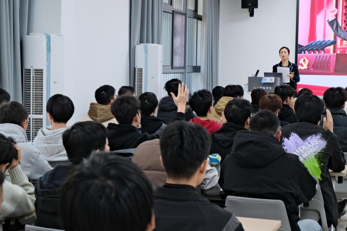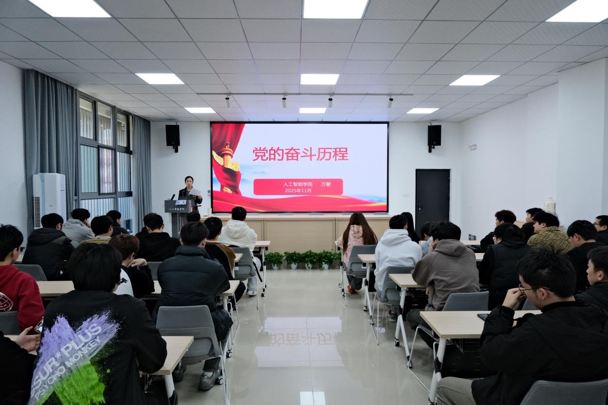为深化新生思想政治教育,强化理想信念根基,11月25日下午,人工智能学院党委书记万馨在学院A201会议室主讲2025级研究生“第一堂党课”,2025级全体研究生参加。