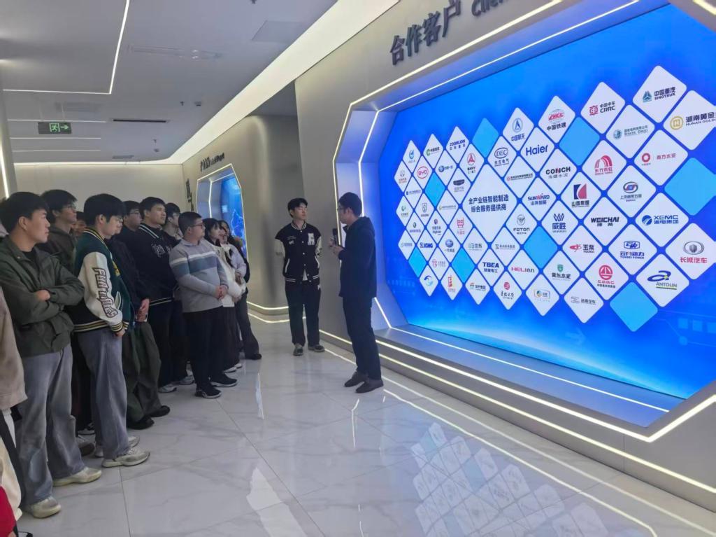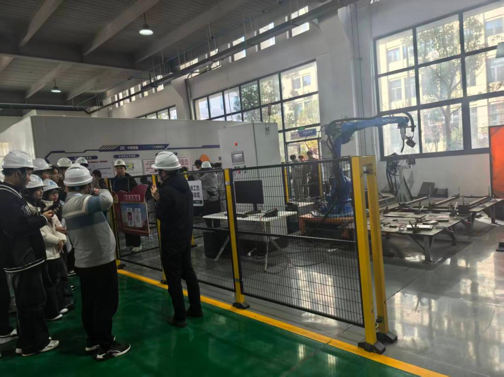 在中南智能人资部负责人的陪同下,学院师生一行参观了企业展示中心、智能装备生产线及研发测试平台,详细了解了企业在工业机器人、智能传感与高端装备集成等领域的技术创新与产业化成果。参观过程中,企业工程师结合生产实际,演示了人工智能技术在工业视觉检测、柔性制造等场景中的落地应用,引发了师生们的浓厚兴趣与积极交流。