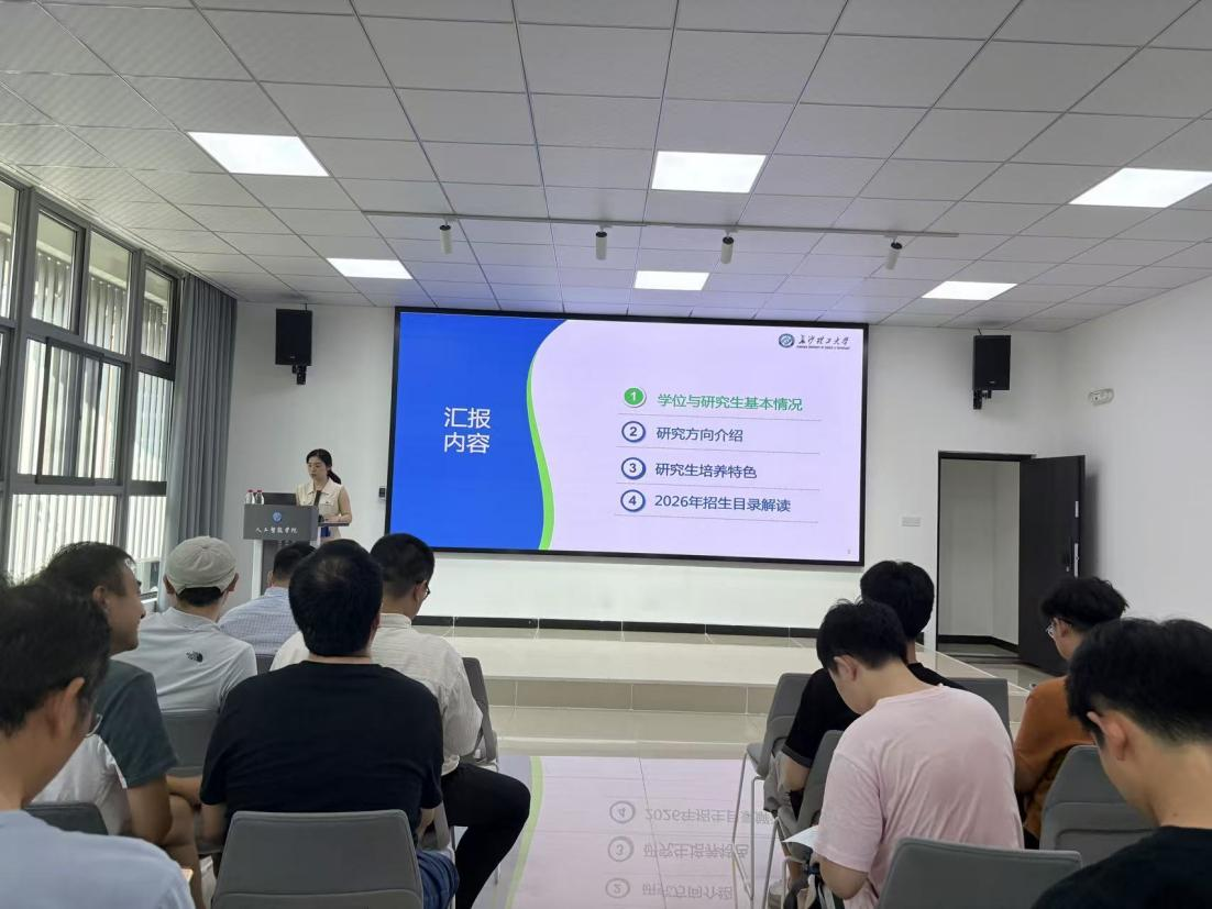 双选会上,万琴就学位与研究生基本情况、研究方向、研究生培养特色和2026年招生目录解读四个方面进行介绍。随后,各导师就其基本信息及研究领域等方面向大家进行了介绍,并对同学们未来研究生阶段的学习生活提出了指导和期待。同时,研究生与科研办干事郑小燕老师根据《研究生手册》培养管理规定,系统解读了各专业培养方案及新生培养计划制定流程,帮助同学们明确了研究生阶段的学习目标和任务。并针对培养计划制定及选课过程中的注意事项进行了重点强调,为同学们提供了宝贵的建议和指导。在导师介绍环节结束后,师生自由交流,研究生新生结合自己的科研兴趣及个人意愿自主填写导师选择志愿,并提交《研究生基本情况及导师接收表》。