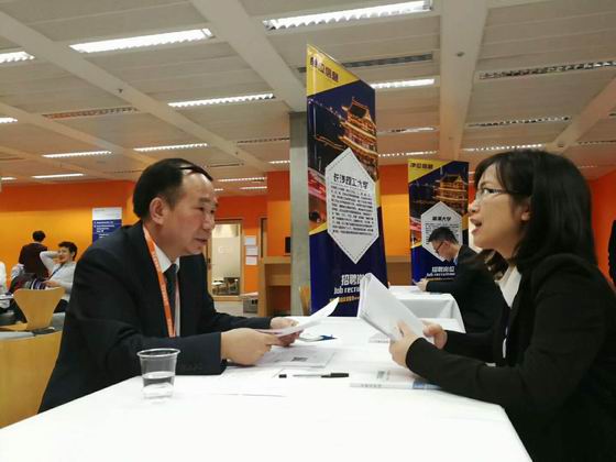 9月15日、16日下午,德国法兰克福专场招聘洽谈会和英国伦敦专场招聘洽谈会分别在法兰克福证券交易所和英国帝国理工大学隆重举行。招聘会期间,黄立宏介绍了学校的基本情况、办学优势和引才政策,与应聘人员进行了深入沟通,数十位海外博士表达了来校工作的意向。