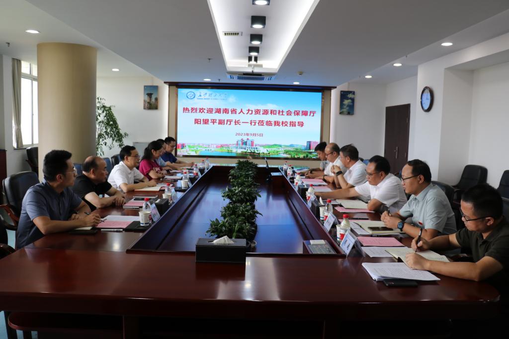 付宏渊对阳望平一行来校调研表示欢迎,向省人社厅长期以来对学校建设发展的关心和支持表示感谢,并简要介绍了学校基本情况及近年来的建设发展成就。