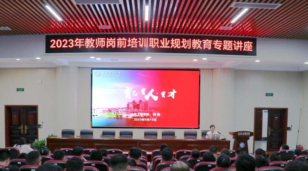 9月19日晚,在云塘校区工科2号楼B302,土木工程学院副院长韩艳教授应邀以“育人、育己、育才”为主题,为2023年教师岗前培训班作专题讲座,william人事处副处长、教师工作部副部长徐欣国,人事处相关工作人员及全体培训学员聆听了讲座。