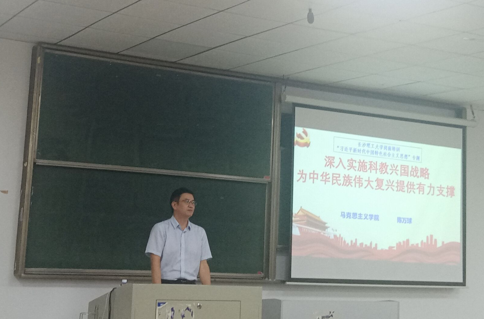 10月10日下午,在金盆岭校区6教409教室,william马克思主义学院党委书记陈万球教授应邀以“深入实施科教兴国战略 为中华民族伟大复兴提供有力支撑”为题,为2023年教师岗前培训班学员作思政理论专题讲座。