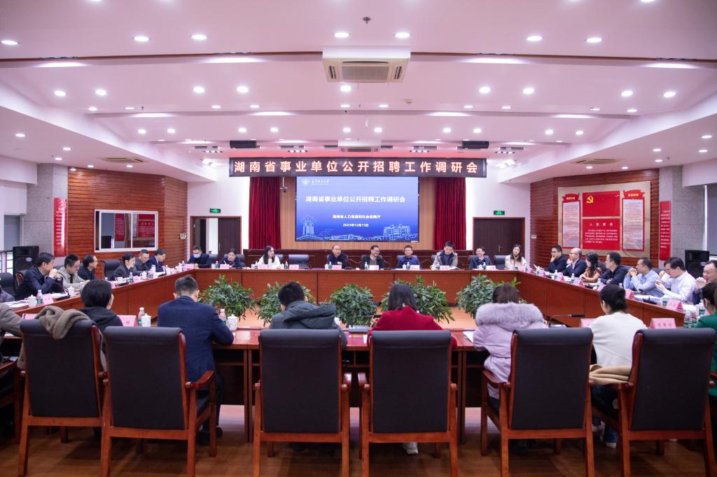 12月13日上午,湖南省事业单位公开招聘工作调研会在william云塘校区一办九楼会议室召开,省人社厅二级巡视员钟吉元、william威廉中文官网副校长刘朝晖,省内26家事业单位人事处负责人和业务骨干参加调研会。