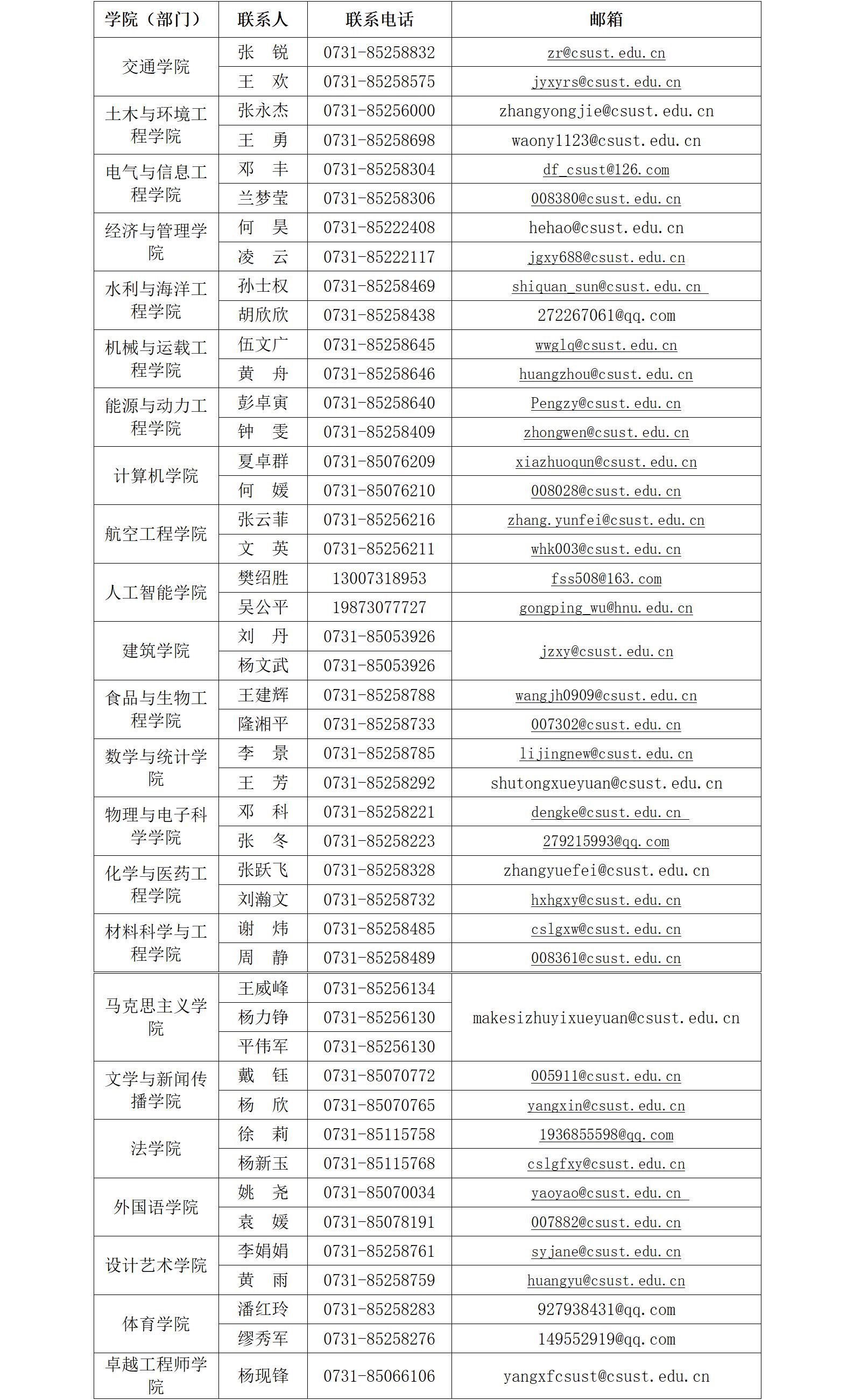 五、各学院(部门)联系方式