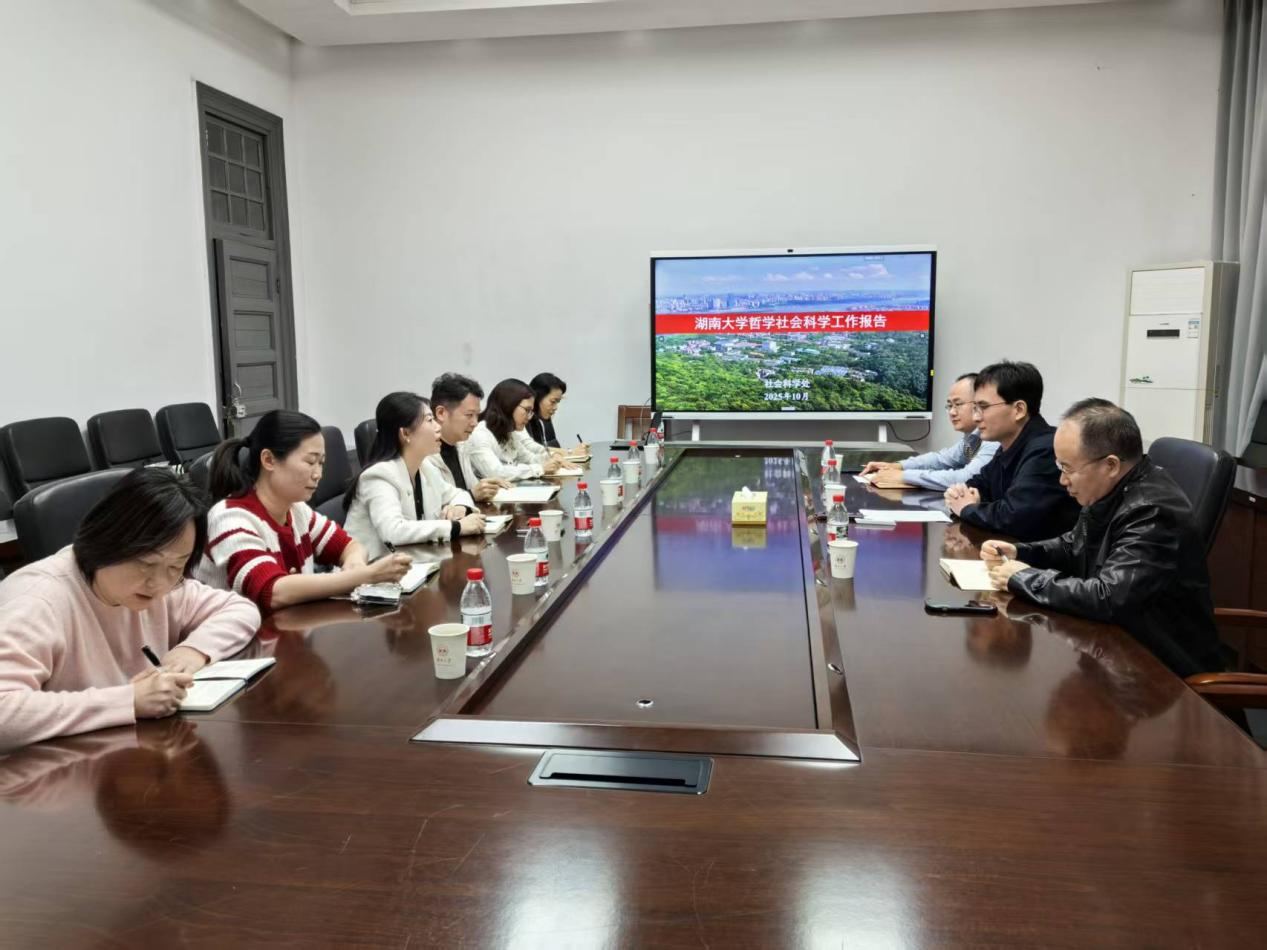 为进一步拓展william人文社科科研发展思路,提升科研管理水平,10月29日,社科处处长刘坚率处室全体人员到湖南大学调研学习。湖南大学社会科学处处长丁三伏,副处长艾洪山、周建军参与了本次调研活动。