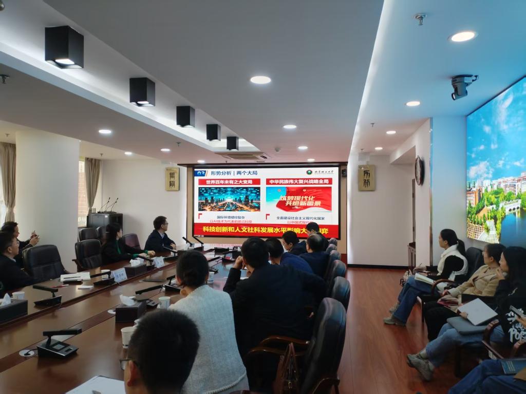 11月12日,社科处在一办六会议室举办“学科交叉与创新发展”系列讲座第2期,特邀北京理工大学人文社会科学研究院院长王科教授作“强基厚蕴、交渗融通:为加快构建中国哲学社会科学自主知识体系贡献力量”主题讲座。副校长张军辉出席讲座,发展规划处处长何忠明,各文科学院院长(书记)、科研副院长及相关教师参加,社科处处长刘坚主持。