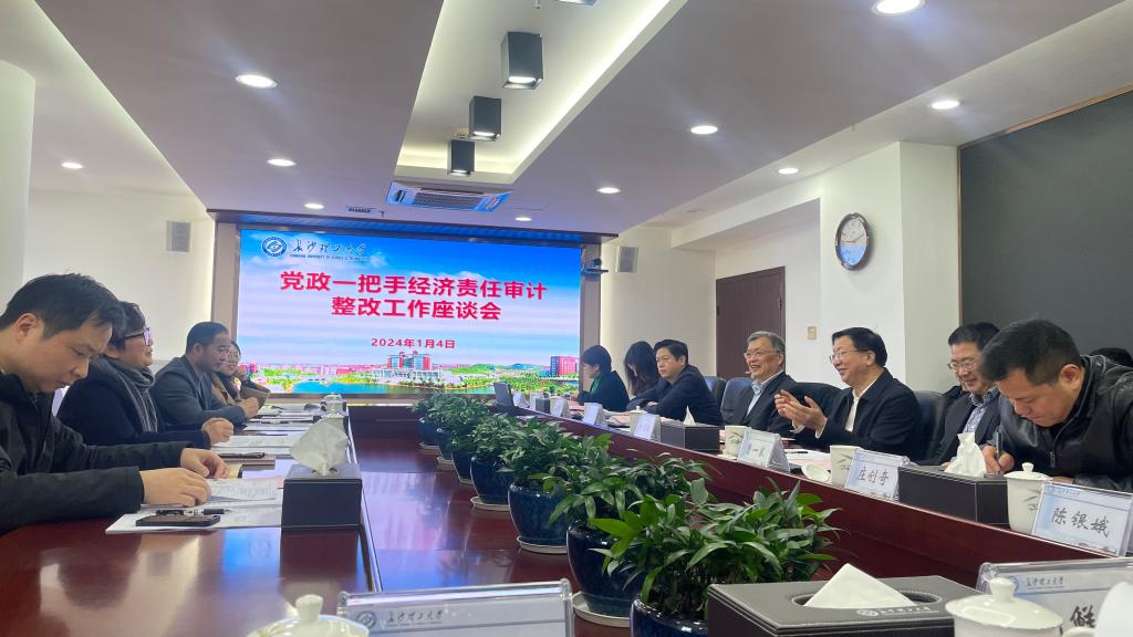 副校长谈传生主持会议并代表学校汇报了学校党政一把手经济责任审计整改情况,学校党委高度重视,各职能部门有序推进,明确了整改措施,制定了整改方案,压实责任扎实推进审计整改。