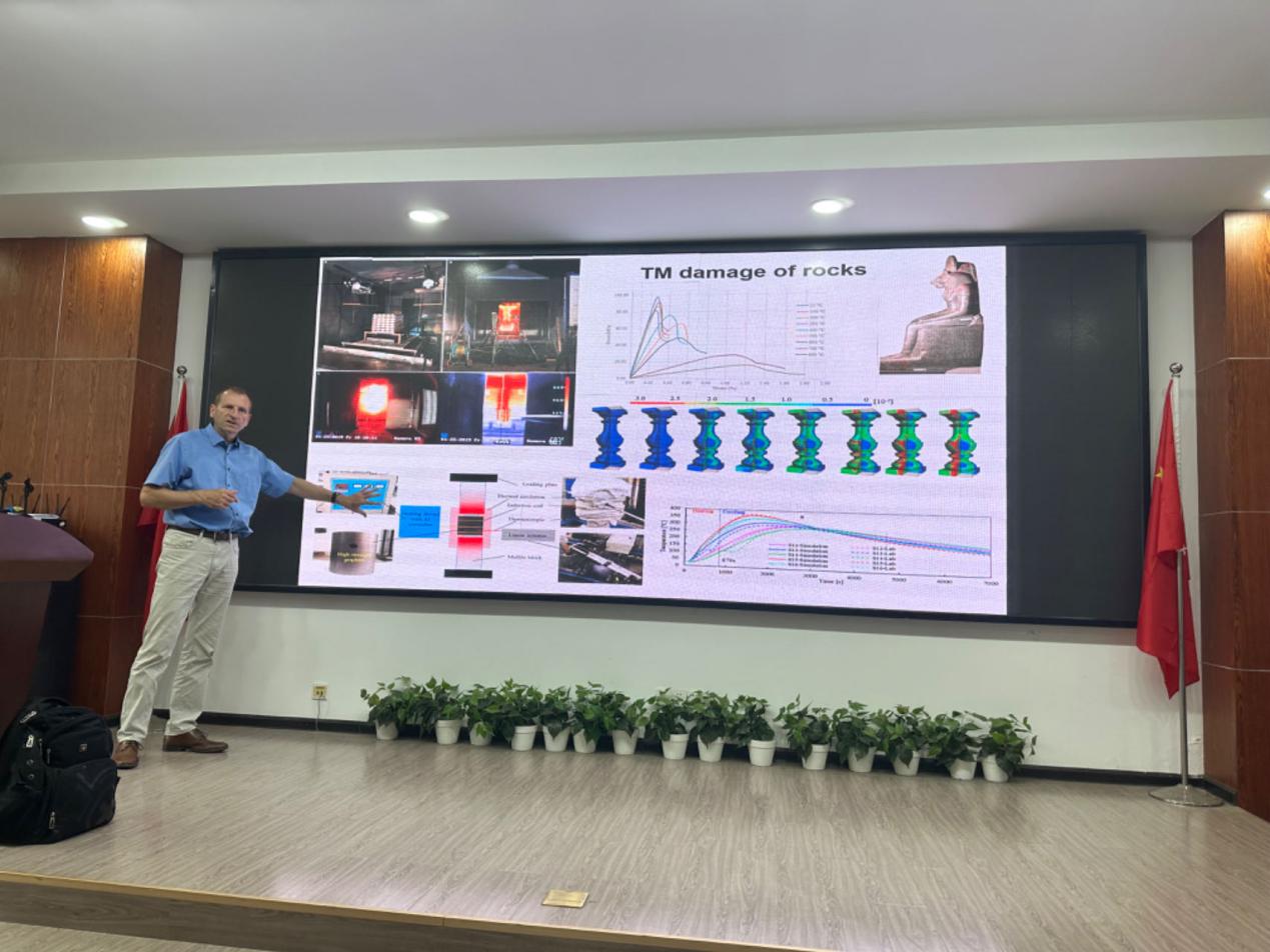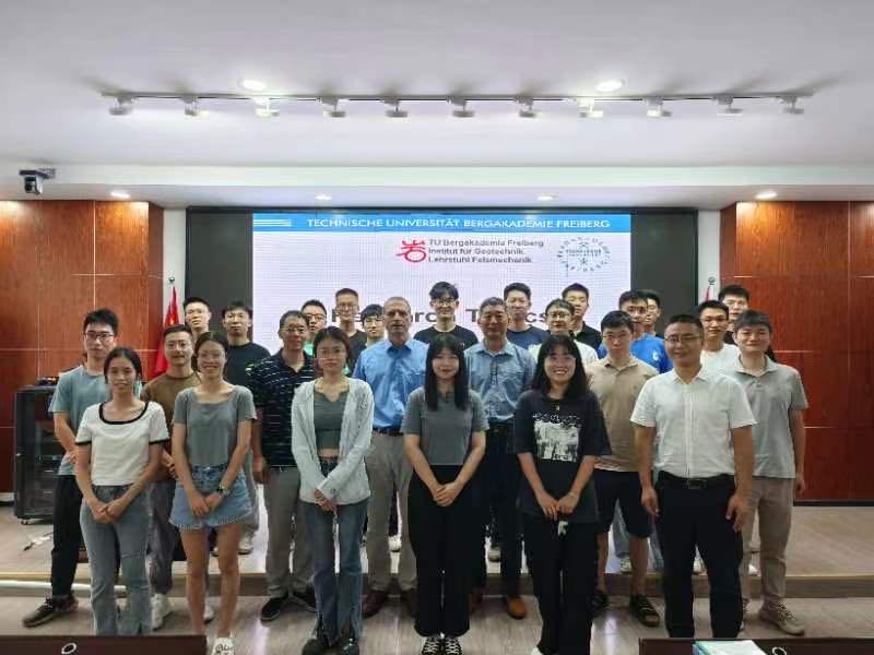 Heinz Konietzky首先介绍了教授弗赖贝格工业大学基本情况,随后介绍弗赖贝格工业大学岩土工程研究所在岩石力学室内试验、数值仿真以及地下岩石实验室等岩石力学基础理论和应用研究方面取得的最新成果。