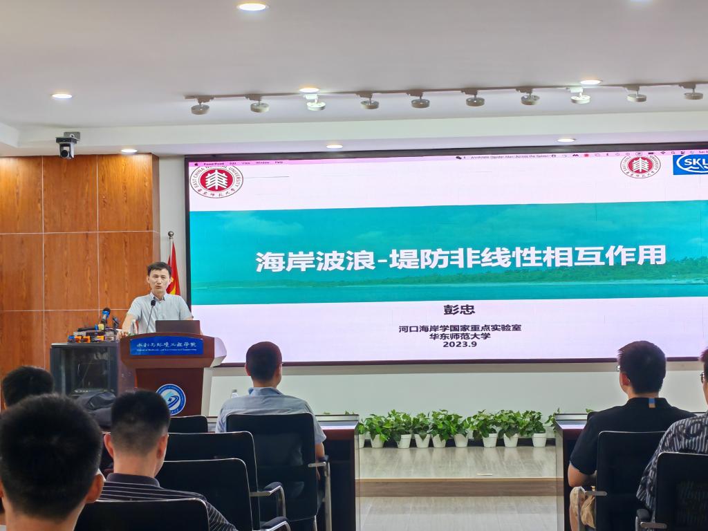 2023年9月9上午,我院邀请了华东师范大学彭忠教授前来进行学术讲座,主题为“海岸波浪-堤防非线性相互作用”。此次讲座由我院姚宇教授主持,100多名校内师生参加本次学术交流活动。
