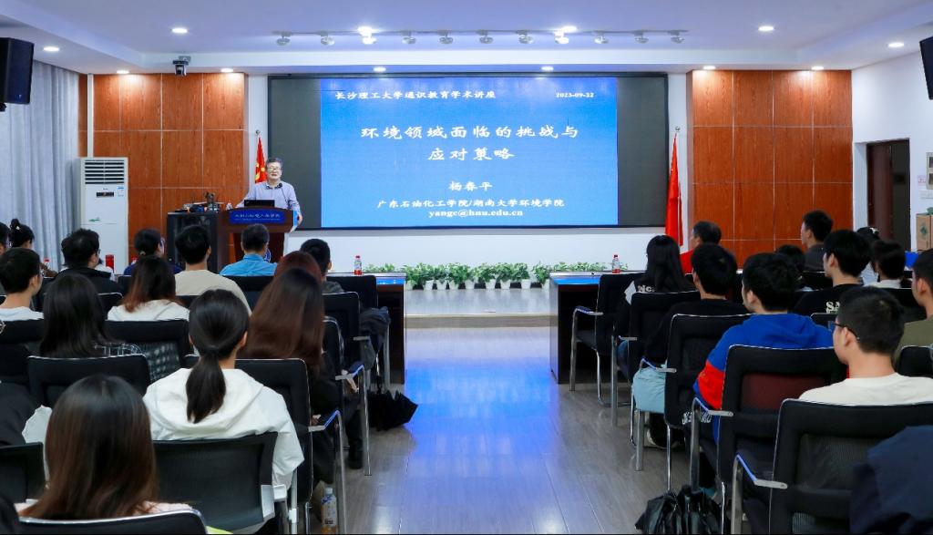 聘任仪式结束后,杨春平教授为参会师生做了题为“环境领域面对的挑战与应对策略”的通识教育讲座。讲座从环境技术的起源展开,依次介绍环境技术的新进展与环境领域面临的挑战,最后提出了面对环境防控新形势下,环境领域的具体应对策略。