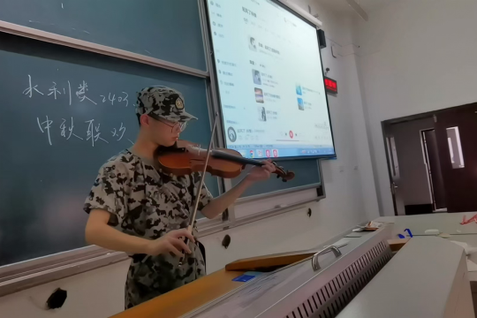 联欢会上,新同学纷纷上台展示才艺。水利类2403班黄睿轩用小提琴演奏了一曲曲脍炙人口的乐曲,现场赢得阵阵掌声;舞蹈朗诵等特色节目让同学们眼前一亮,喝彩声不绝于耳;《晴天》、《十年》、《我怀念的》等歌曲演唱,在班级中营造了欢快的氛围;“谁是歌王”、“你划我猜”、“你画我猜”等小游戏,让每位同学都参与其中,在阵阵欢声笑语中拉近了新生之间的距离。