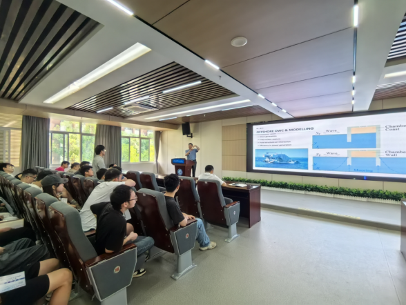 为进一步深化国际交流与合作,促进学校中外合作办学水平不断提升,6月13日上午9-11点,英国卡迪夫大学潘顺琪教授应学院邀请,来校为我院研究生作题为“Numerical Study of Floating WEC with Lattice Boltzmann Method”的学术讲座,讲座由副院长盛丰主持,院长陈杰、副院长伍志元、港口航道与海岸工程系骨干教师和全体二年级研究生及部分博士生和本科生共150余人参加了本次讲座。