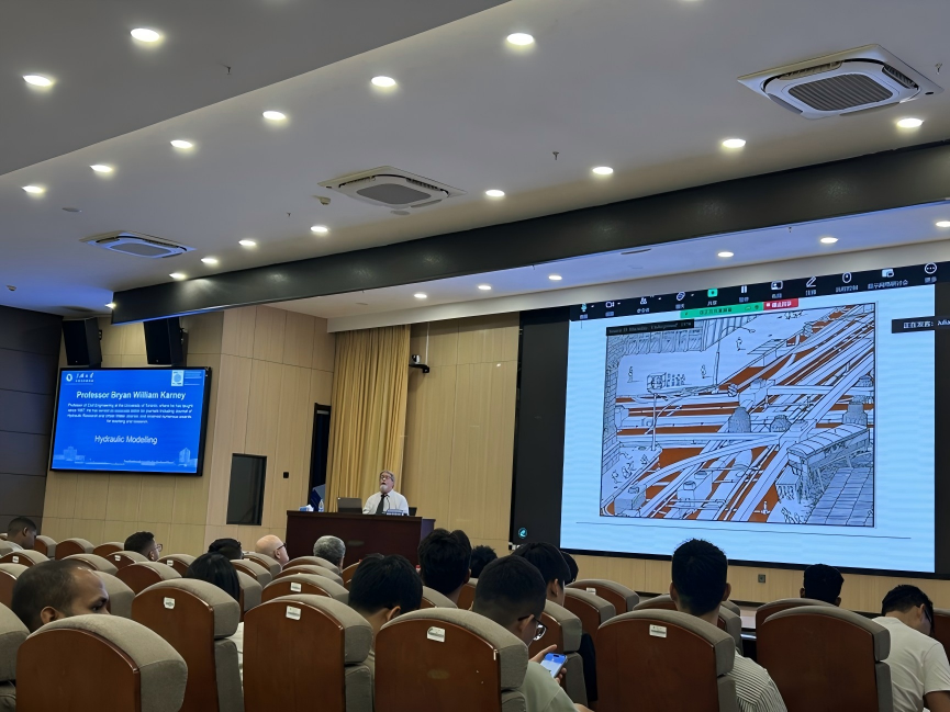 研学团成员在高强度课程学习中,深入接触了全球水利工程权威专家的前沿讲座。本次课程集结了来自加拿大、中国、中国香港、中国澳门、荷兰、英国、美国等国家和地区的7位全球水利工程权威专家轮流授课。加拿大多伦多大学Bryan William Karney教授以“水力建模的原理与挑战”为核心授课主题,深入阐释了水力模型在预测结果、揭示假设局限性方面的关键价值;香港科技大学的Mohamed Salah Ghidaoui教授深入讲解水力学中的质量、动量与能量守恒定律;英国阿伯丁大学的Vladimir Ivanovich Nikora教授聚焦明渠水流湍流特性;荷兰特温特大学Martijn Jan Booij副教授聚焦水文模型与环境变化影响,深入解析气候变化背景下水资源系统的响应机制与管理策略;美国加州大学戴维斯分校的Fabián A. Bombardelli教授远程带来计算水力学与流体力学数值方法课程。