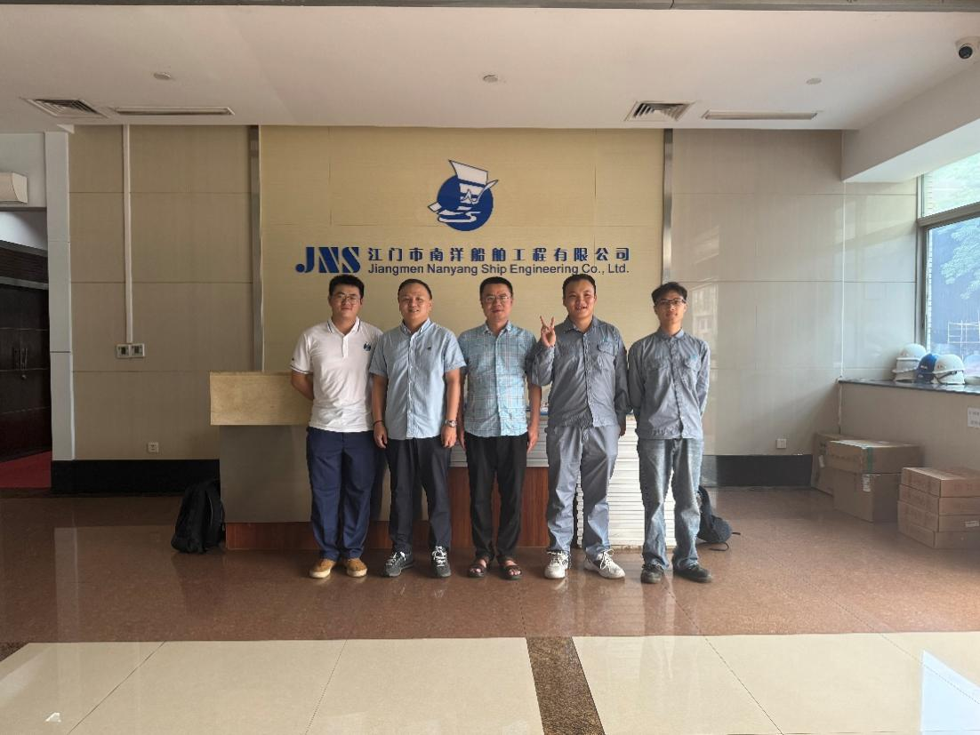 随后,访问团一行来到江门南洋船舶工程有限公司,看望刚入职企业的2025届毕业生,详细了解他们的工作适应情况和生活状态,并组织往届校友座谈。校友们踊跃发言,分享成长体验,积极为校企合作、产学研协同和人才培养反馈建设性意见。座谈会上,详细了解了企业在船舶智能制造领域的最新成果。双方共同回顾了近年来在学生就业实习等方面的合作历程。企业负责人对此表示高度认同,并期待更多william威廉中文官网优秀学子加盟企业,共谋发展。