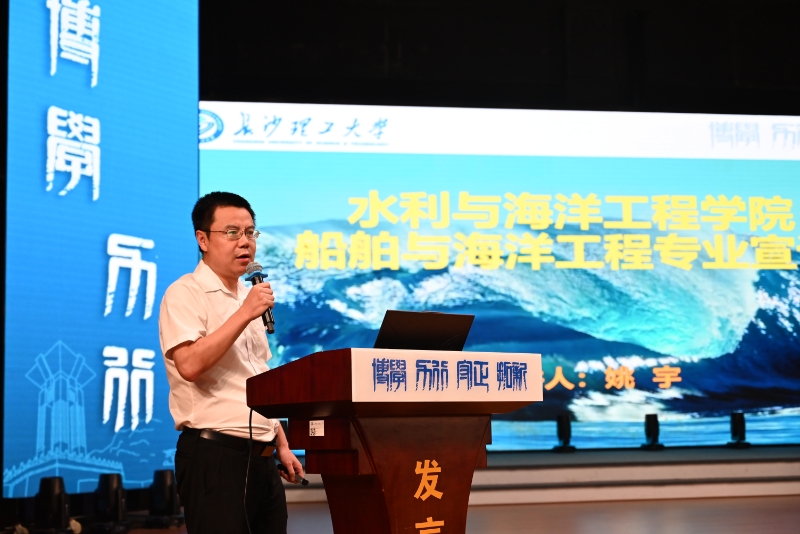 在专业宣讲环节,五位专业宣讲代表精彩开讲,湖湘青年英才伍志元深度解读“中国名片、长理王牌、六高专业”港口航道与海岸工程专业,通过优秀校友的案例指出专业大有可为;湖湘青年英才李毅教授阐释水利水电工程在绿色能源方面的战略地位,并以雅江下游水电站为例明确水利人的使命担当;盛丰教授指出一切涉水事务,追根溯源都是水文命题,他通过大量的案例指出水文与水资源学科发展永无止境,前景广阔;湖南省科技创新领军人才孙士权教授通过专业是什么,学什么,发展怎么样揭示给排水科学与工程在智慧水务与碳中和目标下的发展路径;教育部青年长江学者姚宇教授对船舶与海洋工程专业进行了全面概括,展望了专业支撑海洋强国战略的发展前景。五位专家聚焦专业内核、行业前沿、时代使命,深入剖析学科脉络与时代使命专业内涵,深化新生专业认知,筑牢学科自信根基。